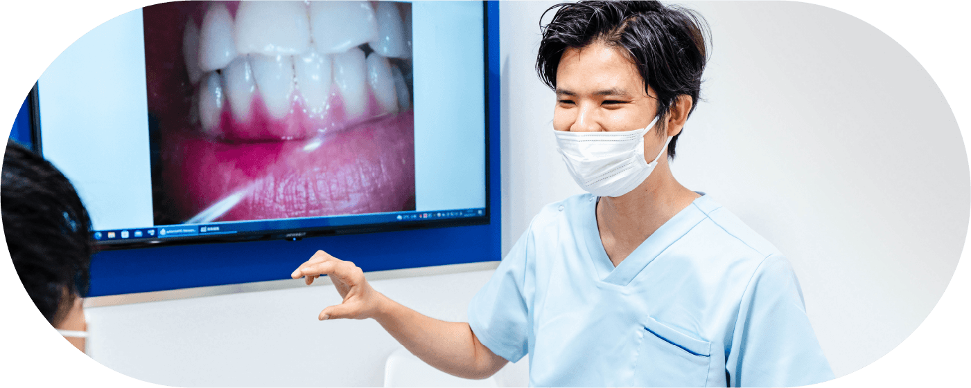 歯医者に対して「事前の説明がなくて不安を感じた」「何の治療をされているのか分からなくて怖い」といった患者様の声をよく耳にします。当院では、患者様の理解の伴う丁寧な説明を大事にし、不安や疑問を解消してから治療へと進んでいく方針をとっています。